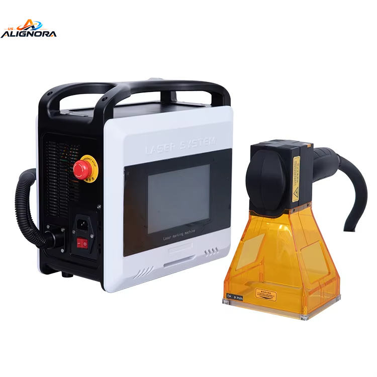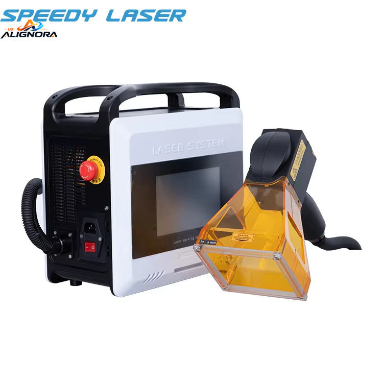 เครื่องแกะสลักเลเซอร์แบบพกพา 20w 30W 50W เครื่องมาร์กกิ้งไฟเบอร์เลเซอร์ขนาดเล็กแบบมือถือ สำหรับโลหะ ยาง และยางรถยนต์