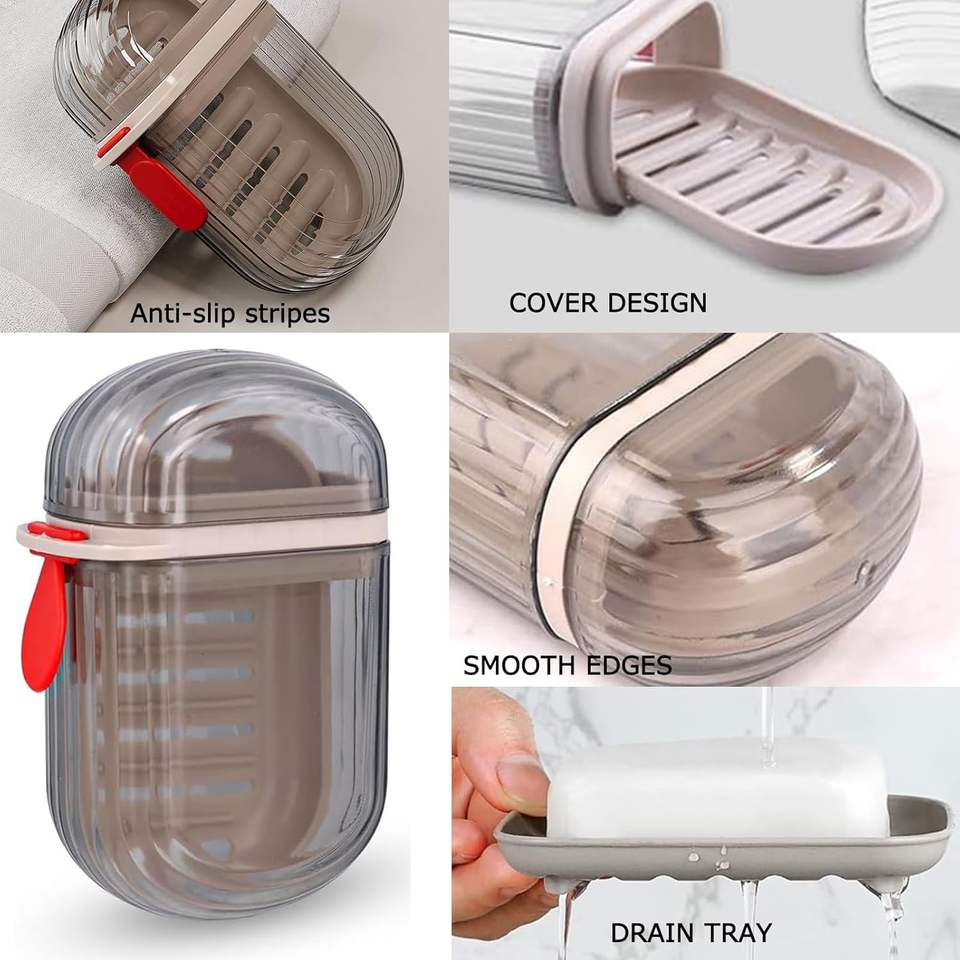 ที่ใส่สบู่ใสสะอาดแบบพกพากันการรั่วที่ใส่สบู่พร้อมฝาปิดสำหรับห้องน้ำฝักบัว