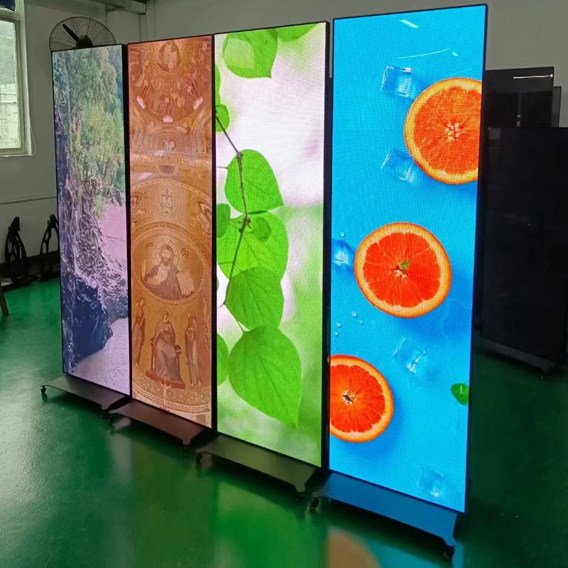 หน้าจอโปสเตอร์ LED แบบพกพาแผงอลูมิเนียมสำหรับมือถือจอแอลอีดีติดผนังวิดีโอแบบไร้รอยต่อ