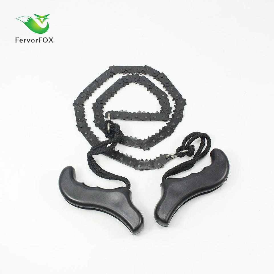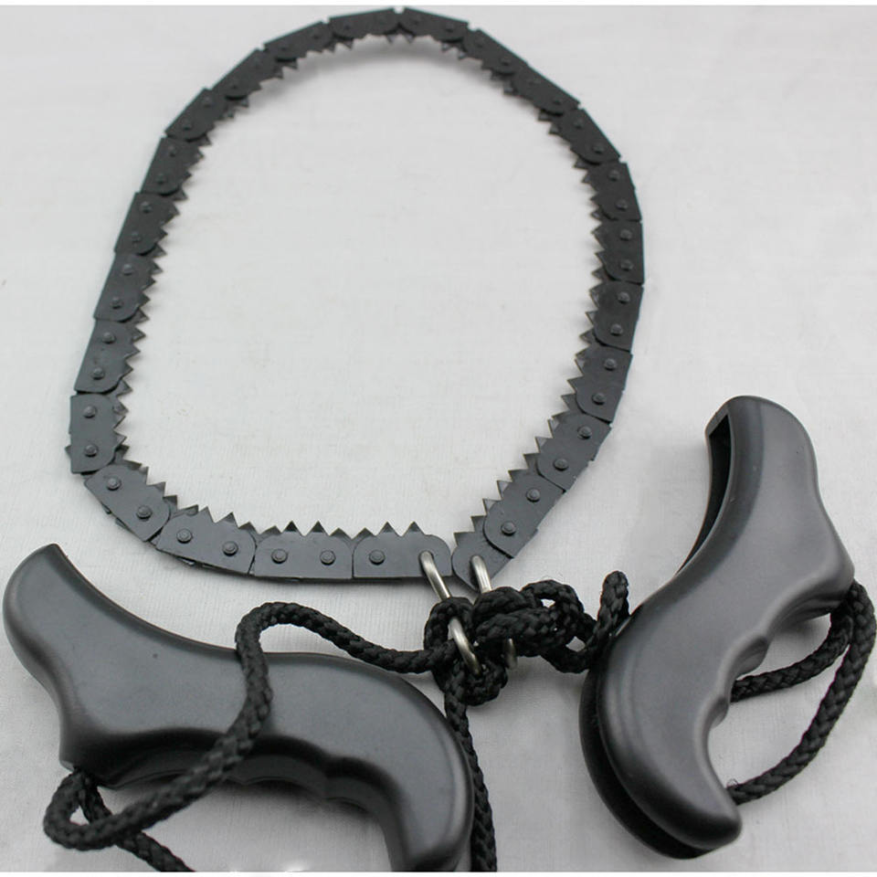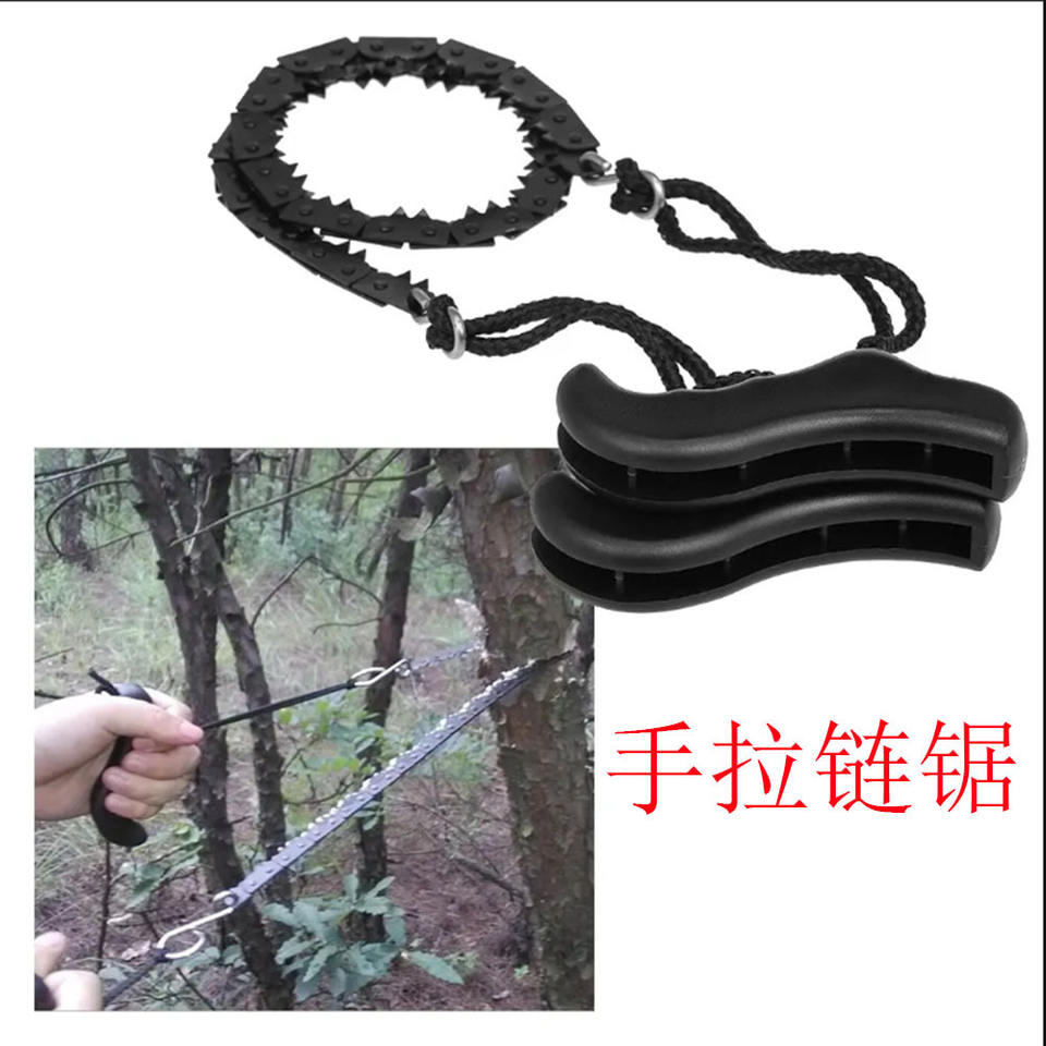 เลื่อยโซ่แบบพกพาพร้อมด้ามจับพลาสติกสีดำ เครื่องมือเอาตัวรอดสำหรับการตั้งแคมป์และการตัดไม้ ขนาดชุด