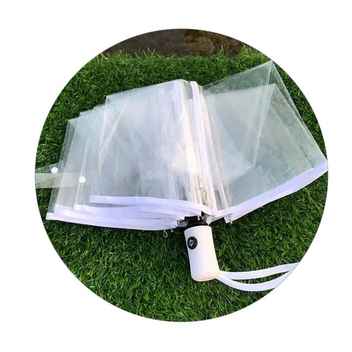 ร่มพับโครงเหล็กแบบพกพา โครงไฟเบอร์แก้ว ผ้า PVC โปร่งใส ลายดอกไม้สวยงาม ป้องกันแสงแดดและรังสียูวี อัตโนมัติเต็มรูปแบบ