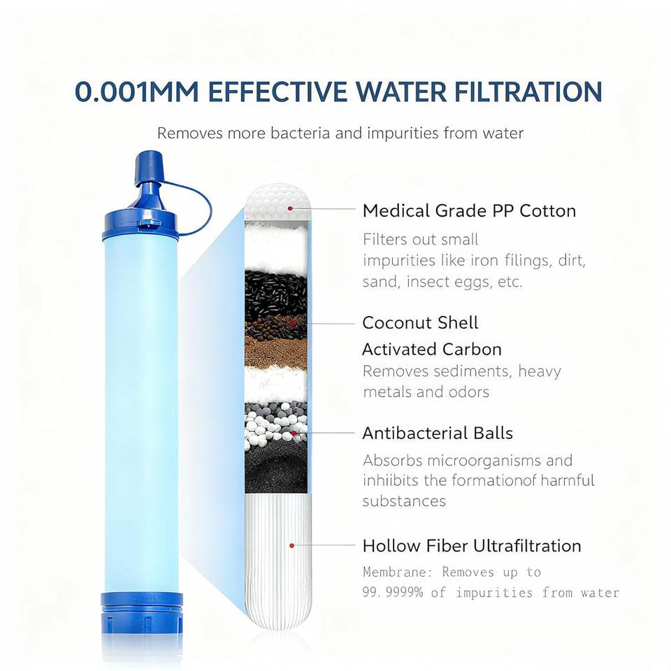 ชุดกรองน้ำแบบพกพาชนิดหลอดดูดน้ำ ขนาดเล็ก สำหรับการเดินป่า ตั้งแคมป์ กิจกรรมกลางแจ้ง การเอาชีวิตรอด และการเดินทาง