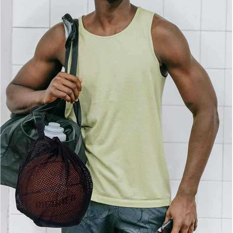 กระเป๋าตาข่ายแบบพกพาพร้อมเชือกผูกปิด สำหรับเก็บบาสเก็ตบอล วอลเลย์บอล ฟุตบอล พร้อมตะขอเกี่ยวคาราบิเนอร์