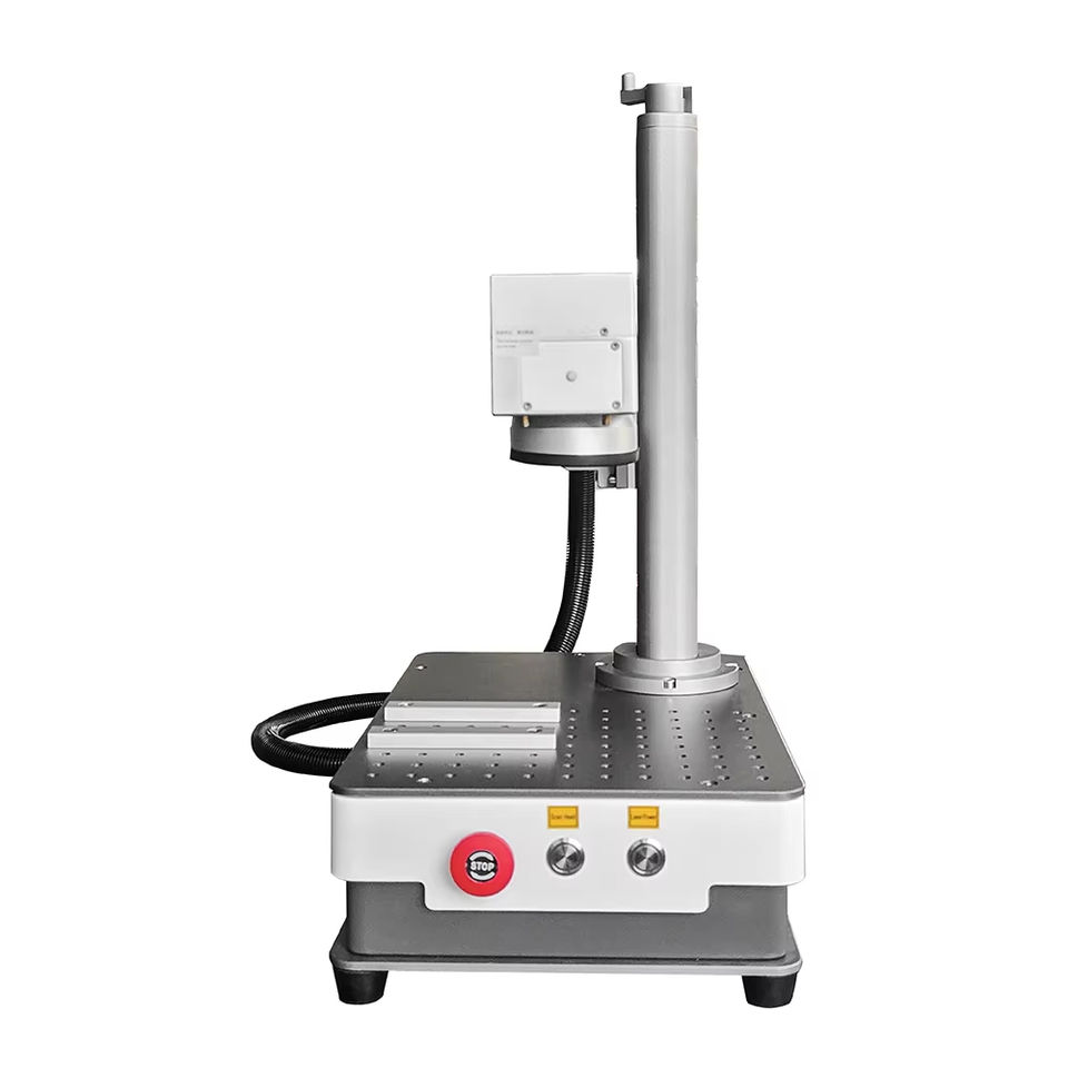 เครื่องเลเซอร์มาร์กกิ้งไฟเบอร์แบบพกพาขนาดเล็ก 20W 30W สำหรับโลหะ พร้อมระบบ AI รองรับไฟล์ DWG/DST ควบคุมด้วย CNC ระบายความร้อนด้วยอากาศ