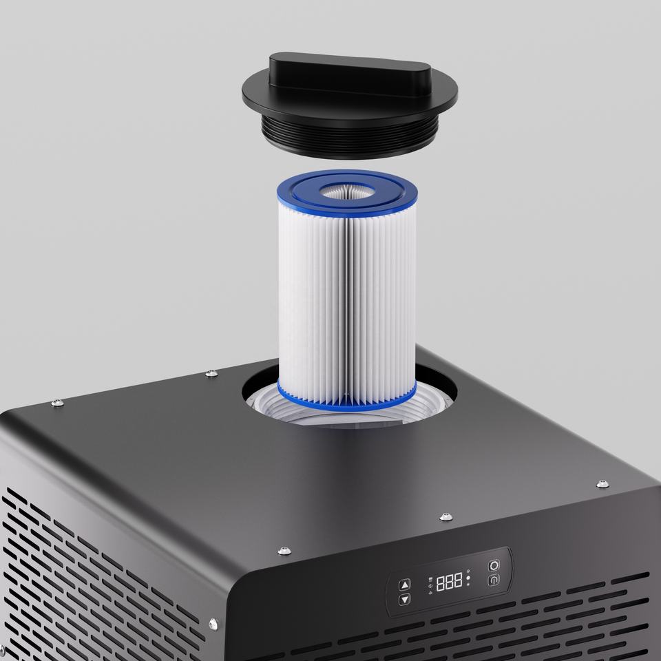 เครื่องทำความเย็นแบบพกพาขนาดเล็กสำหรับแช่น้ำเย็น 3/4 แรงม้า ระบบ OEM พร้อมตัวกรองและควบคุมผ่านแอพ WiFi