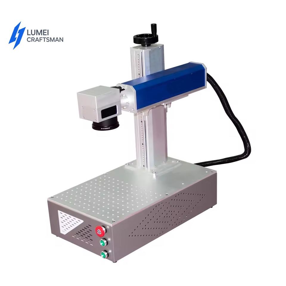 เครื่องทำเครื่องหมายเลเซอร์ขนาดเล็กแบบพกพา20W 30W เครื่องทำเครื่องหมายโลหะไฟเบอร์ออปติกสำหรับป้ายสุนัขรหัส QR