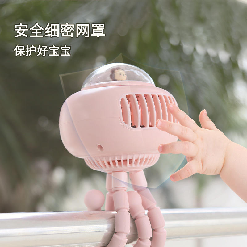 พัดลมพกพาขนาดเล็กแบบชาร์จไฟได้ ใช้แบตเตอรี่ เงียบสงบ เหมาะสำหรับรถเข็นเด็ก ดีไซน์รูปปลาหมึก พัดลมมือถือ