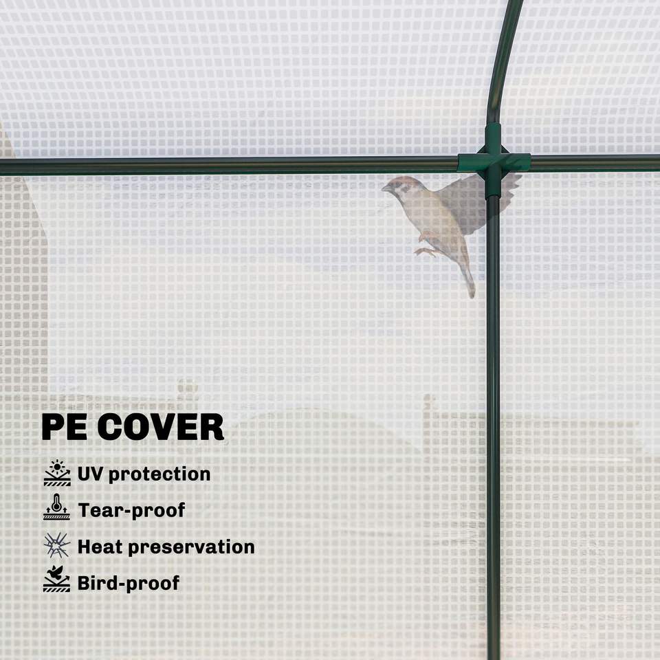 เรือนกระจกขนาดเล็กแบบพกพาพร้อมประตูม้วนขึ้นได้และหน้าต่างตาข่าย 2 บาน ผ้าคลุม PE ขนาด 78.7" x 29.5" x 74" สีขาว รุ่น D0100XF9YBY สำหรับสวน