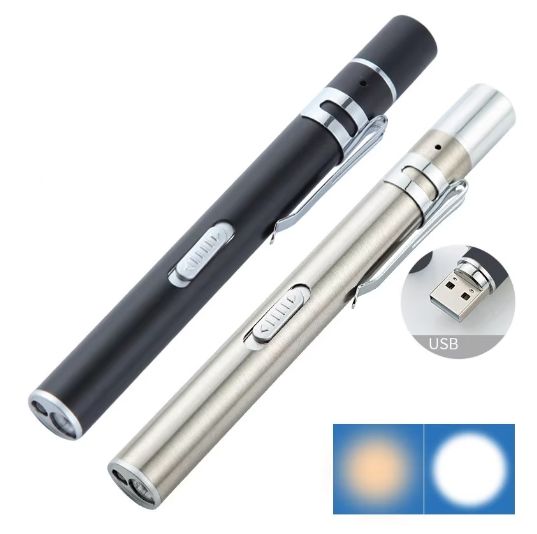 ไฟฉายขนาดเล็กพกพาสะดวกใช้ในทางการแพทย์ชาร์จ USB ได้มีสองสีสำหรับนักศึกษาแพทย์แพทย์