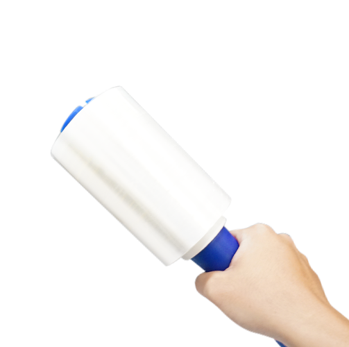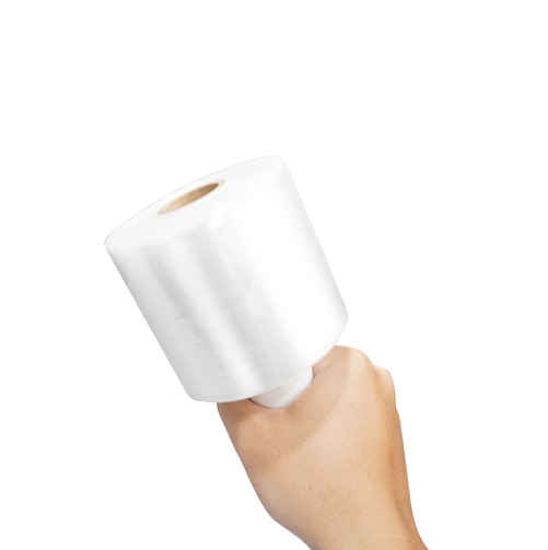 ฟิล์มยืดพลาสติก PE แบบพกพาขนาดเล็กพร้อมหูหิ้ว ม้วนพันพลาสติกแบบมือถือ ความเหนียวสูง สำหรับบรรจุภัณฑ์
