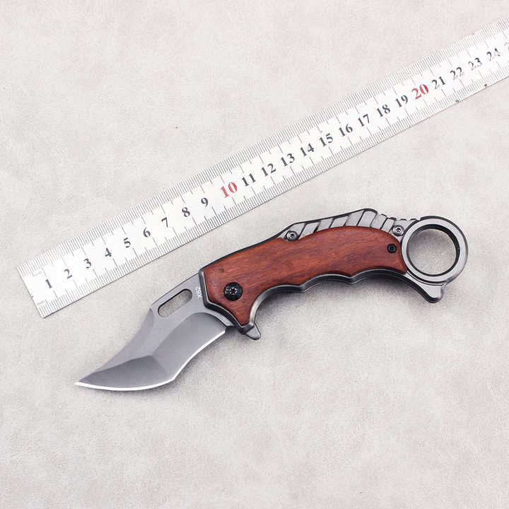 มีดพกพาขนาดเล็กใบมีดสแตนเลสอเนกประสงค์สำหรับกิจกรรมกลางแจ้ง ด้ามไม้พับได้ เหมาะสำหรับตั้งแคมป์ งาน DIY รับผลิตแบบ OEM