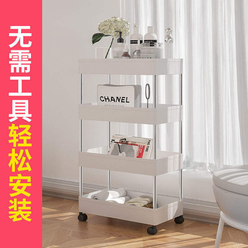 ชั้นวางของเคลื่อนที่แบบพกพา 4 ชั้น พร้อมล้อ ชั้นวางพลาสติกสำหรับห้องครัว ห้องน้ำ ห้องสุขา อุปกรณ์จัดระเบียบอเนกประสงค์