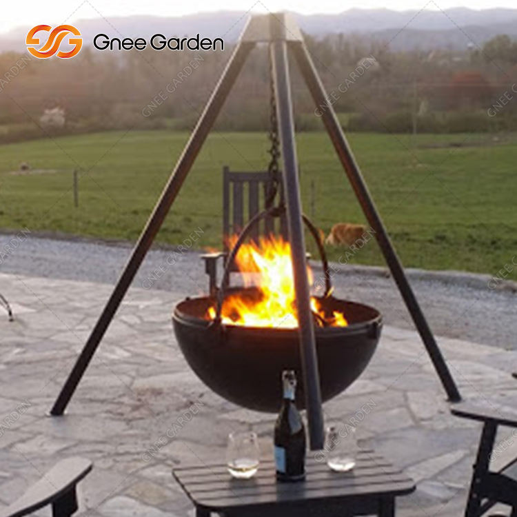 เตาย่างบาร์บีคิวเหล็กคอร์เทนแบบพกพาที่ทันสมัยและหลุมไฟพร้อมฟืนความร้อนกลางแจ้งขนาดใหญ่และการแก้ปัญหาการทำอาหารเคลือบด้วยผง