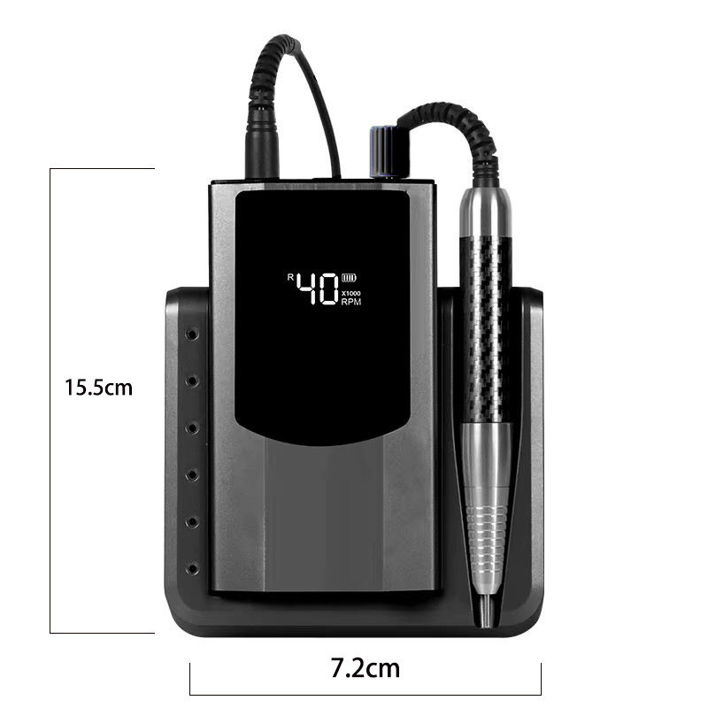 สว่านเจาะเล็บแบบพกพาสีดำ40000รอบต่อนาทีสว่าน4030 ND70S Nd70S 40000 RPM ฉลากส่วนตัว