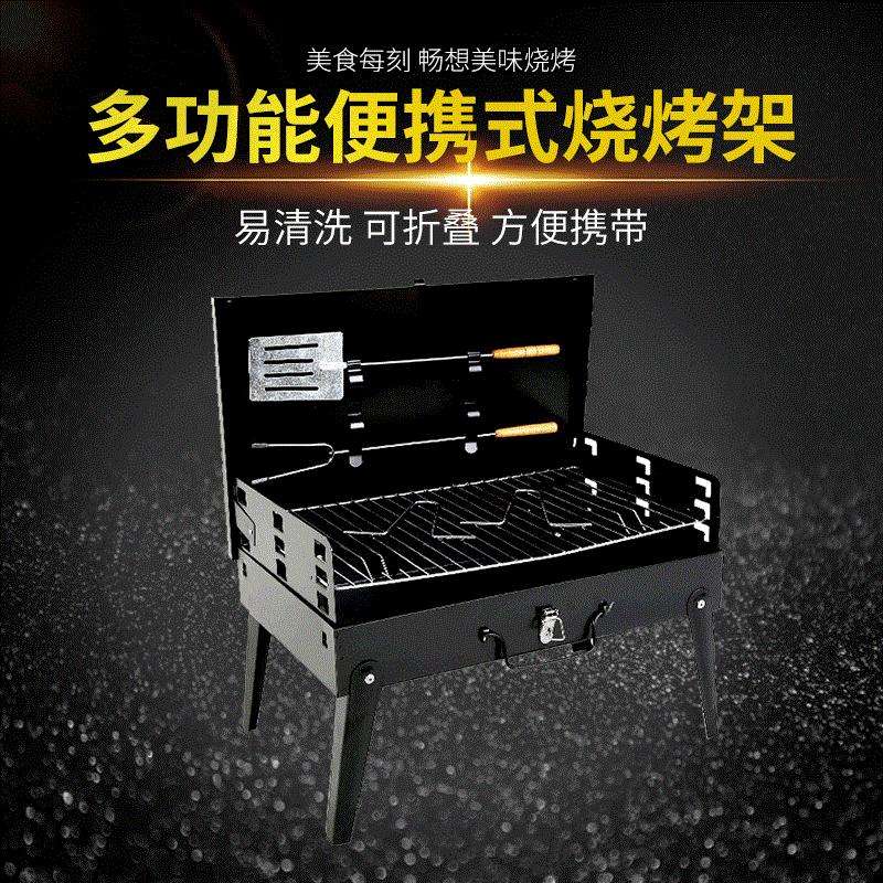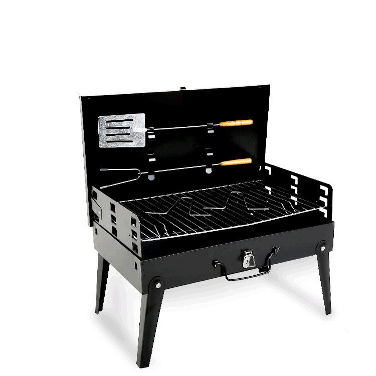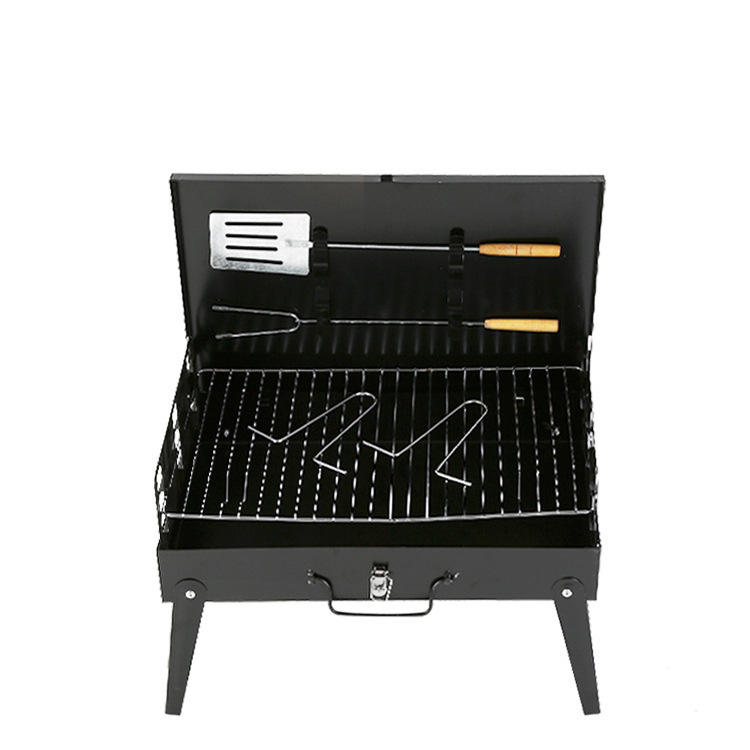 เตาย่างบาร์บีคิวกลางแจ้งแบบพกพาเหล็กสีดำเคลือบด้วยไฟฟ้าพับได้สำหรับใช้ในบ้าน 3-5 คนมัลติฟังก์ชั่น