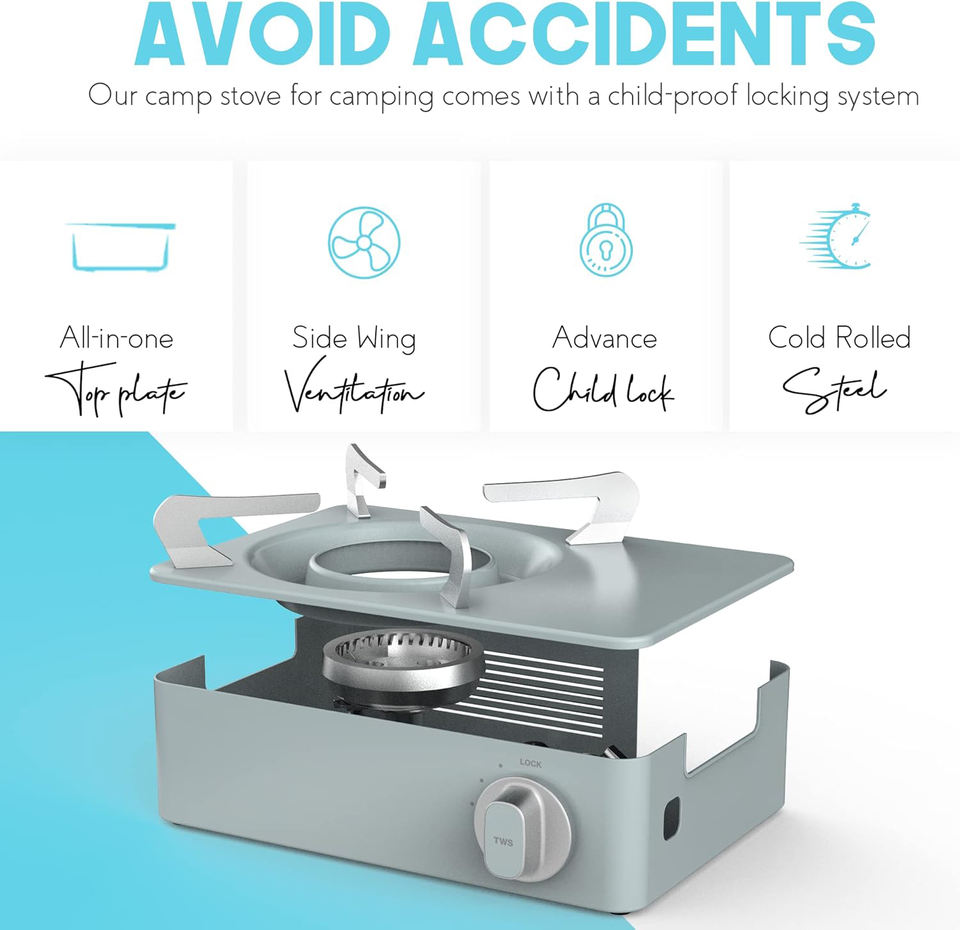 เตาแก๊สโพรเพนบิวเทนโครงเหล็กขนาดเล็กแบบพกพาสำหรับตั้งแคมป์กลางแจ้ง