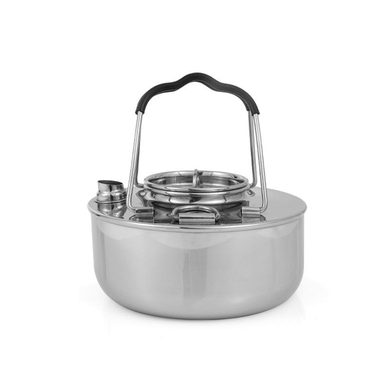 กาต้มน้ำสำหรับตั้งแคมป์กลางแจ้งแบบพกพา 1.5 ลิตร 304 สแตนเลสสตีลน้ำหนักเบาชุดชงชาสำหรับเดินป่าแบกเป้