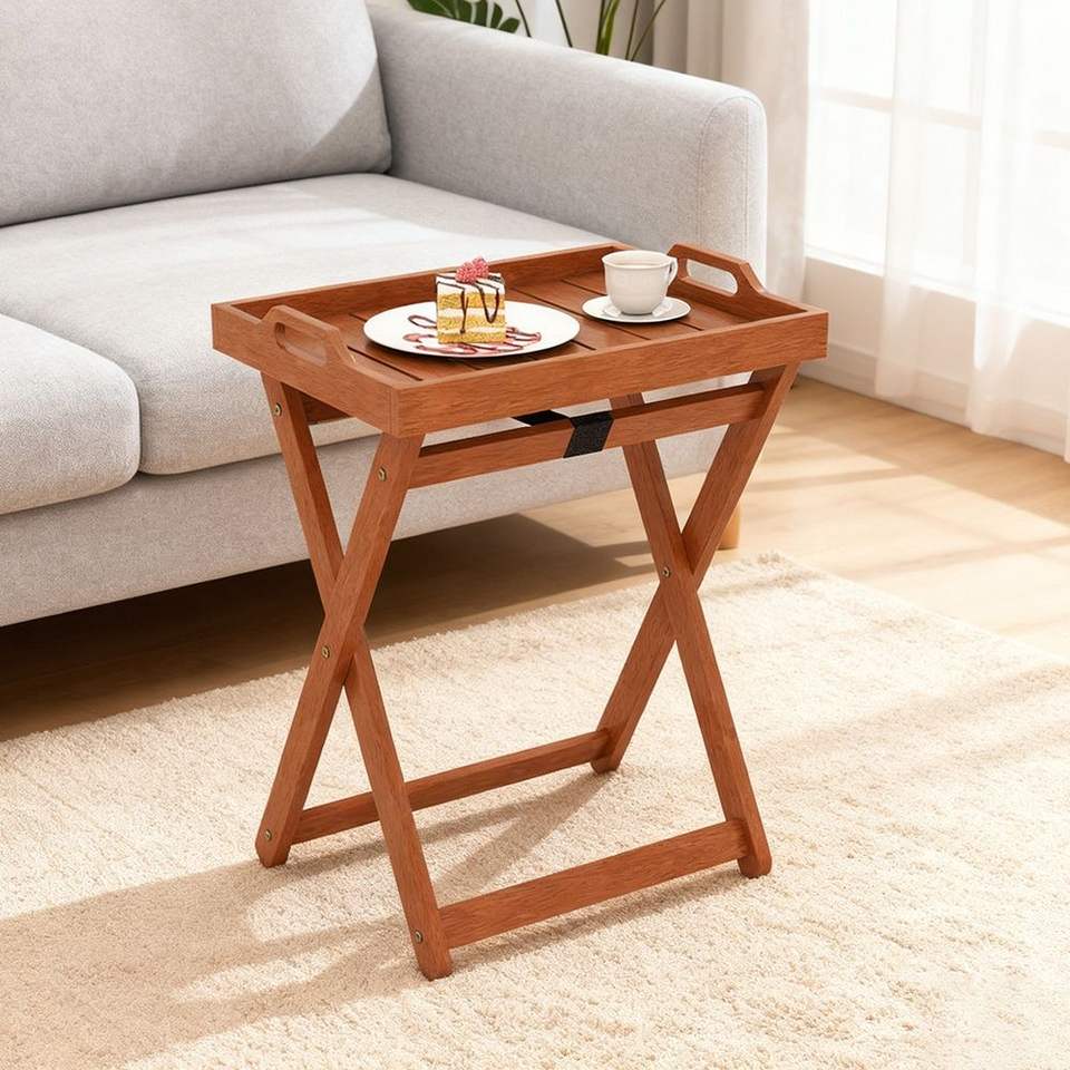 โต๊ะไม้พกพาสำหรับใช้งานกลางแจ้งพร้อมโครงพับได้สำหรับวางข้างหรือวางปลายโซฟา