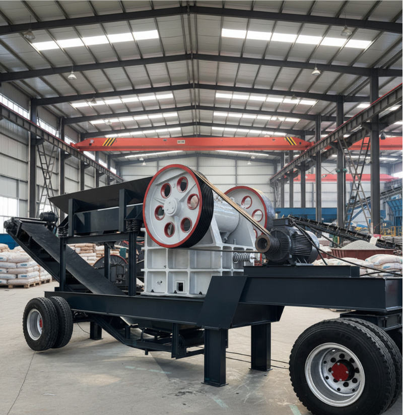 เครื่องบดหินแบบเคลื่อนที่ PE 400*600 พร้อมสายพานลำเลียงและเครื่องป้อน พร้อมเครื่องยนต์และตลับลูกปืน ผลิตภาพสูงสุด 15-20 ตัน/ชม.