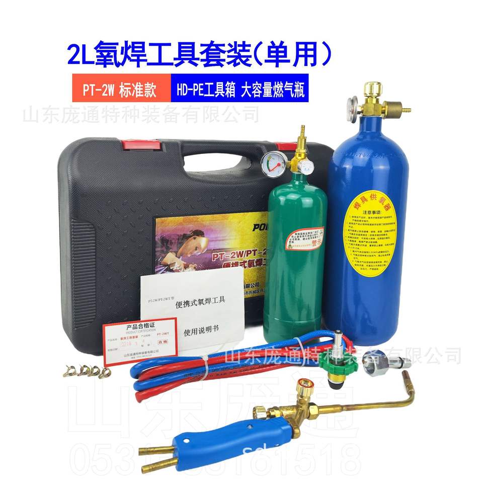 เครื่องเชื่อมทองแดงและทองเหลืองแบบพกพา PT-2W พร้อมหัวฉีดแบบใช้ครั้งเดียวขนาด 2 ลิตร ใช้กับแก๊สออกซิเจน บิวเทน และน้ำมันเบนซิน