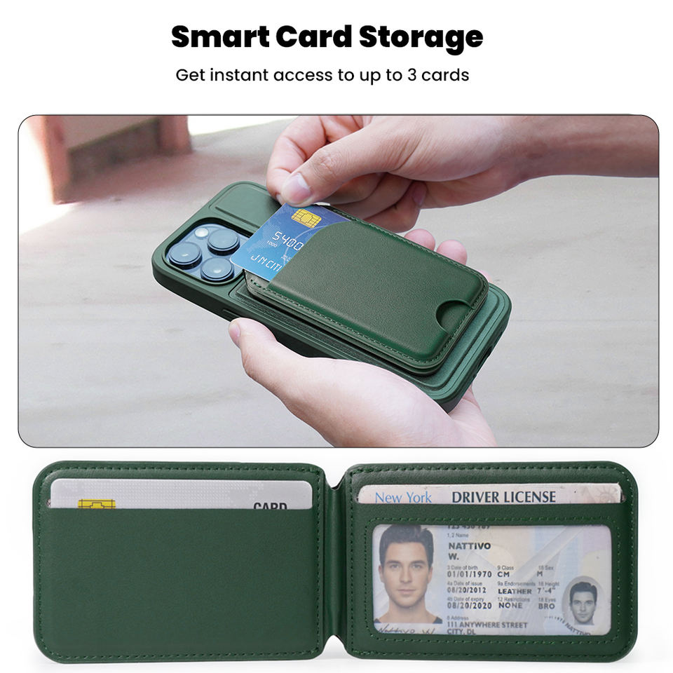 Portable PU Leather Magnetic Card Holder Wallet Metal Ring Stickers RFID Feature Mobile Phone Stand Case Credit Card Accessory