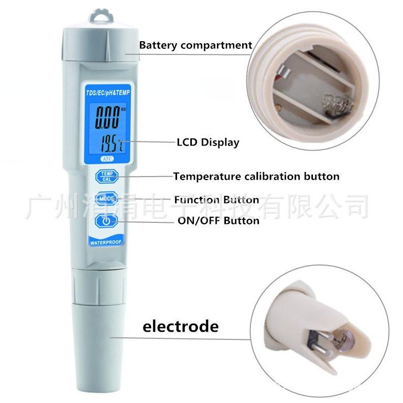 ปากกาทดสอบค่า pH TDS EC อุณหภูมิแบบพกพา 0-14Ph ความแม่นยำ 0.01 กันน้ำ เครื่องวิเคราะห์คุณภาพน้ำ พร้อมอิเล็กโทรดและหน้าจอ LCD