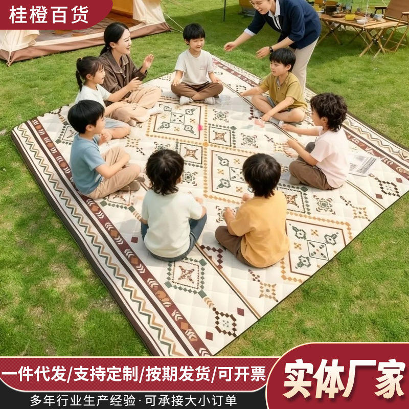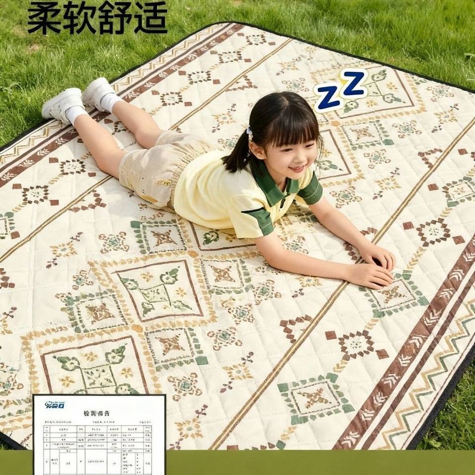 เสื่อปิกนิกแบบพกพาสำหรับตั้งแคมป์กลางแจ้งชายหาดหญ้าเสื่อกันลื่นกันความชื้นผ้าอ็อกซ์ฟอร์ดรูปทรงสี่เหลี่ยมผืนผ้าลายการ์ตูน