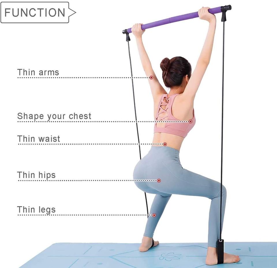ชุดอุปกรณ์พกพาสำหรับพิลาทิส บาร์พร้อมสายรัดออกกำลังกายสำหรับการออกกำลังกายทั่วร่างกาย การฝึกความแข็งแรงที่บ้าน และการกระชับสัดส่วน