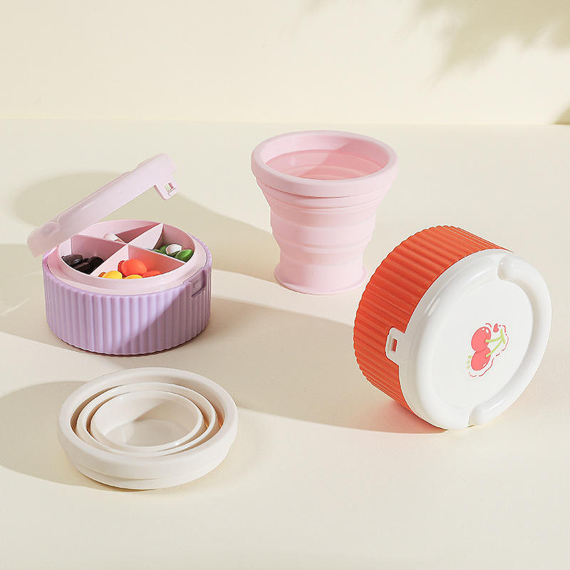 ขวดน้ำพกพาพร้อมกล่องยา 2 in 1 ขนาดเล็ก ความจุเยอะ ปิดสนิท พับได้ น้ำหนักเบา