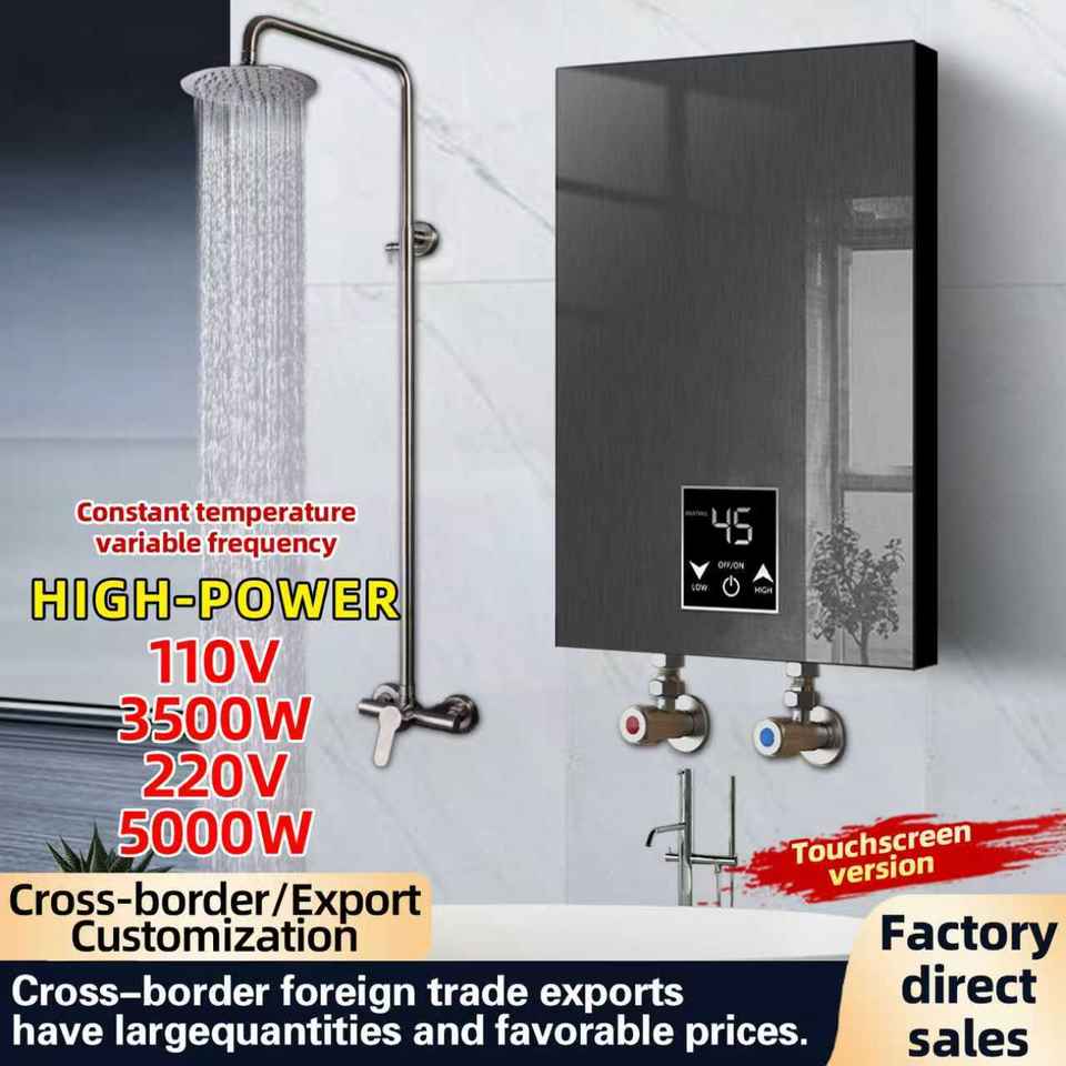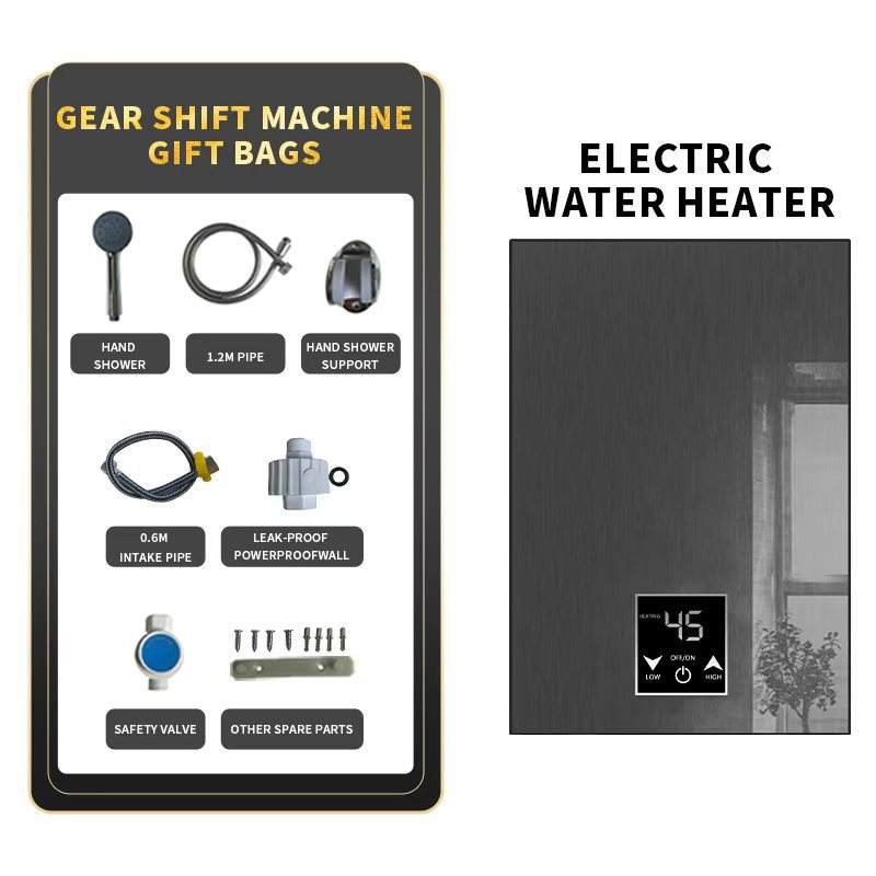 เครื่องทำน้ำอุ่นไฟฟ้าแบบพกพา สแตนเลส 220V พร้อมหน้าจอ LED ภาษาอังกฤษ IPX7 กันน้ำ ร้อนเร็ว ประหยัดพลังงาน