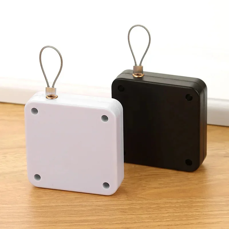 SSR ตัวปิดประตูบานเลื่อนพลาสติกแบบพกพาไร้เสียง ไม่ต้องเจาะ ดึงด้วยเชือก ติดด้วยกาวในตัว ดีไซน์ร่วมสมัย ห้องนั่งเล่น