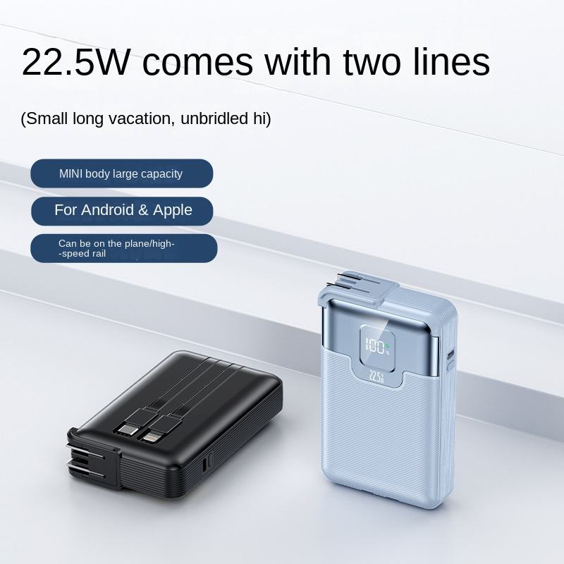 แบตสำรองพกพา 10000mAh 22.5W ชาร์จเร็ว พร้อมสายชาร์จในตัว ขนาดเล็ก สำหรับ iPhone 16 Huawei Xiaomi