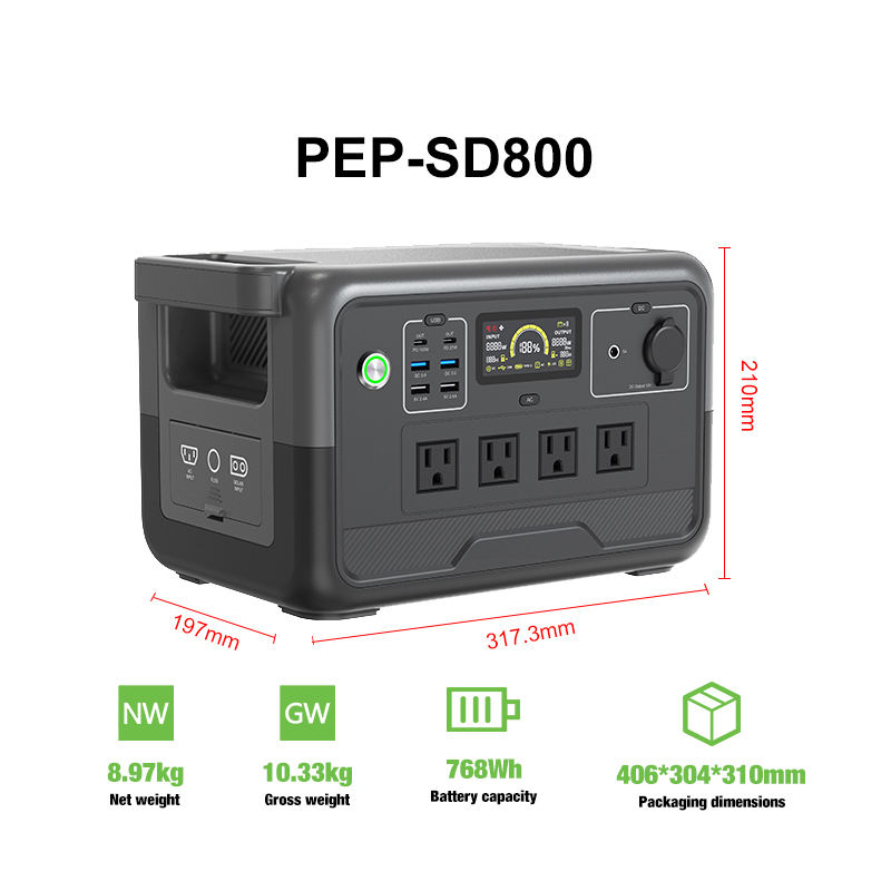 Portable Power Bank 800W 768Wh LiFePO4 Battery Pure Sine Wave MPPT Fast Charge Solar Generator with AC Outlet Emergency Backup