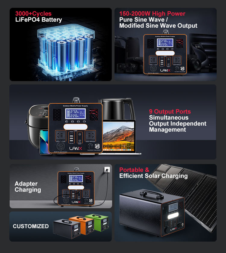 สถานีพลังงานแบบพกพา150W 200W 300W 600W 1000W 2000W ระบบเก็บพลังงาน QC3.0-PD ลิเธียม