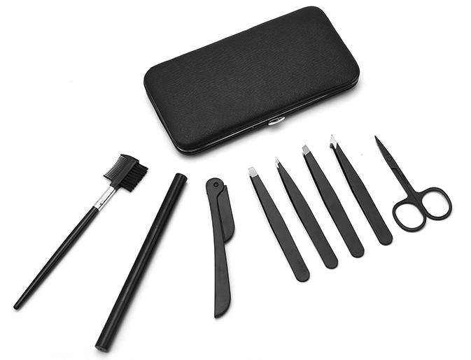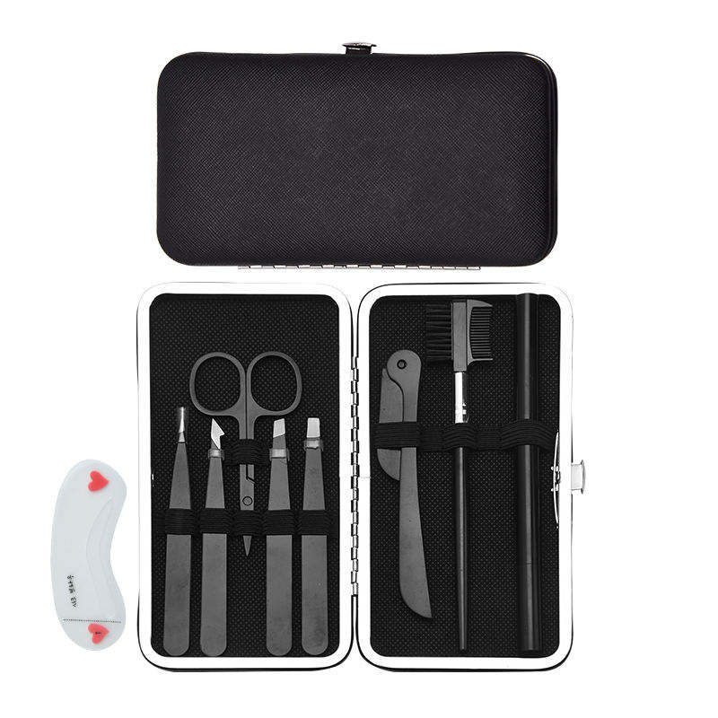 ชุดกันคิ้วขนตาสแตนเลสแบบพับได้แบบพกพาสำหรับผู้หญิงรวมถึงแหนบมีดโกนสำหรับแต่งหน้า