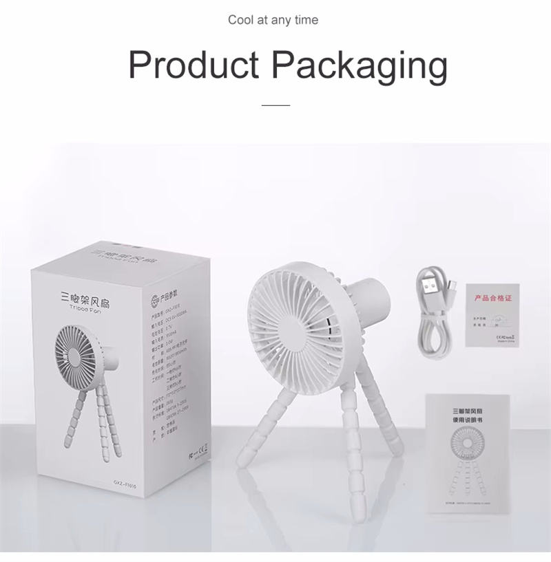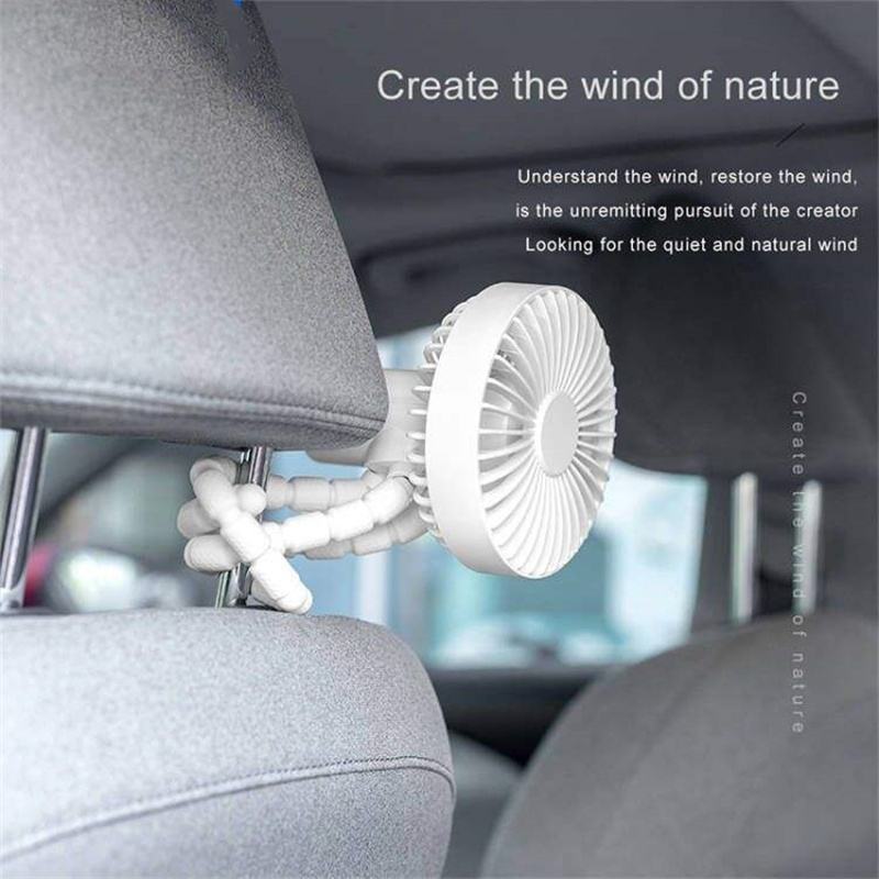 พัดลม USB แบบชาร์จไฟได้แบบพกพาสำหรับรถเข็นเด็กมีความยืดหยุ่นพับได้ดีไซน์ให้จับปลาหมึกแบบสั่นอัตโนมัติสำหรับใช้งานกลางแจ้งสามแบบ
