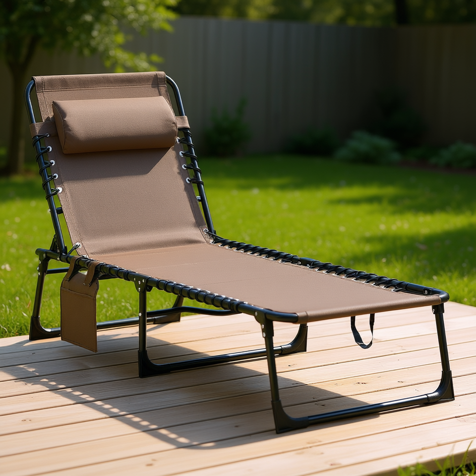 เก้าอี้พักผ่อนแบบพับได้ เก้าอี้นอนปรับเอนได้ เตียงพับสำหรับตั้งแคมป์ พนักพิงปรับได้ เฟอร์นิเจอร์กลางแจ้งสำหรับอาบแดดในสวน