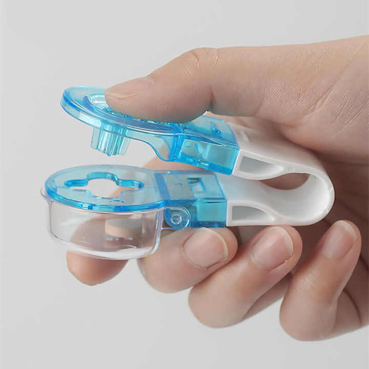 เครื่องจ่ายยาเม็ดพลาสติกทรงสี่เหลี่ยมผืนผ้าแบบพกพาที่เปิดก้อนตุ่มพร้อมเครื่องมือกำจัดเม็ดยา