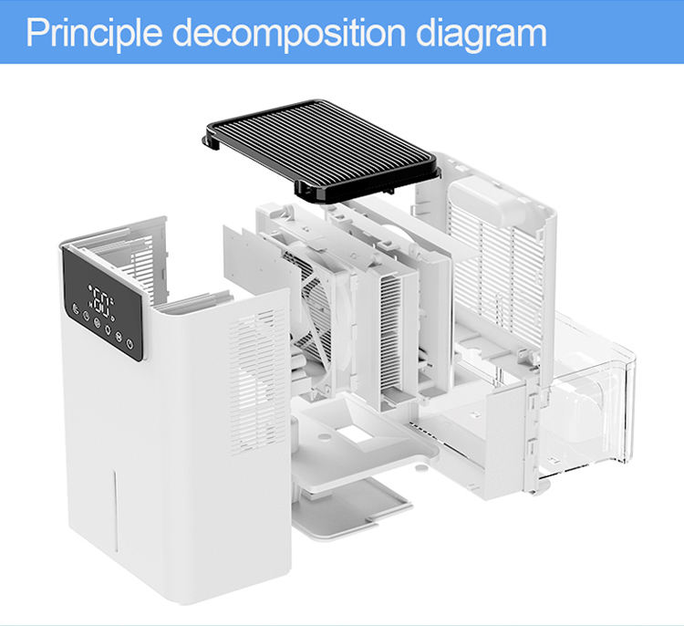 เครื่องลดความชื้นแบบพกพา ถังน้ำ 2 ลิตร ควบคุมด้วยหน้าจอสัมผัส เงียบ 40 เดซิเบล สำหรับใช้ในบ้าน ห้องนอน ห้องน้ำ ครอบคลุมพื้นที่ 200-299 ตารางฟุต