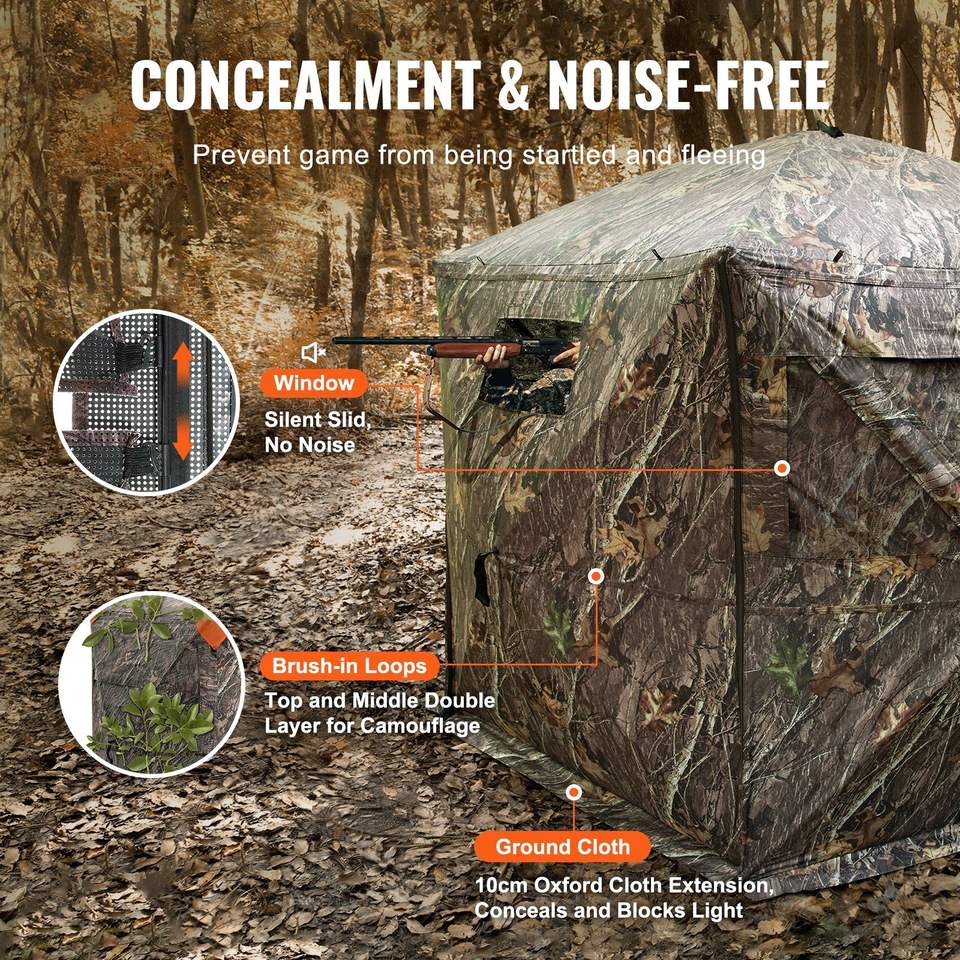 เต็นท์กวางป๊อป288องศาแบบพกพาที่มีความยืดหยุ่นสูง6-7คนพร้อมหน้าต่างแนวนอน4บานสำหรับการล่าไก่งวงและกวาง