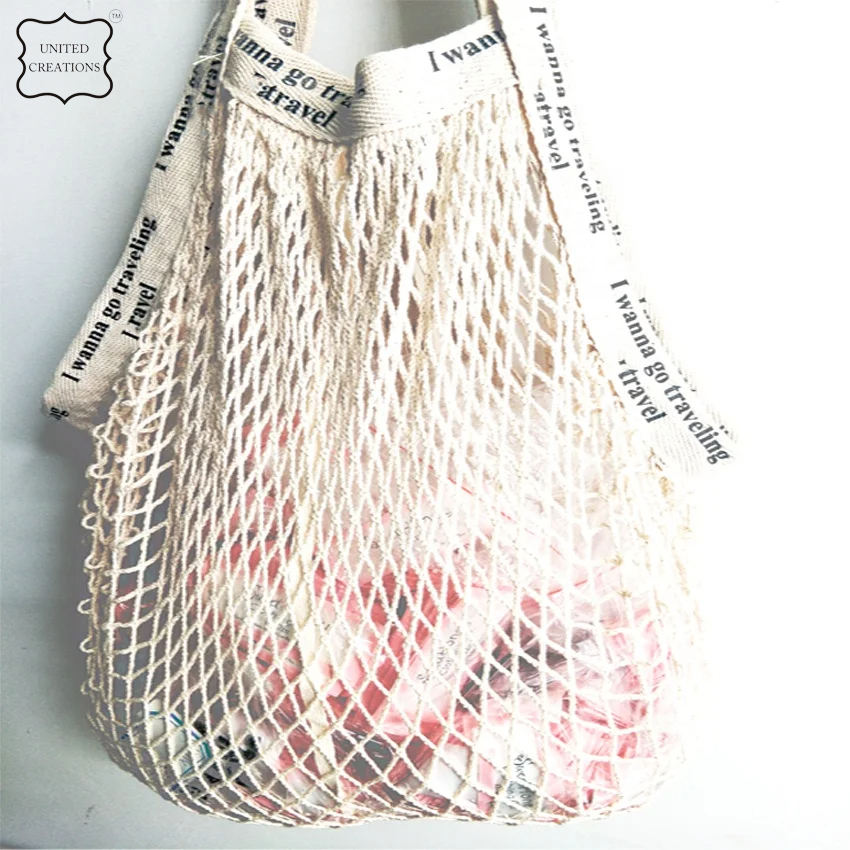 ถุงช้อปปิ้งแบบพกพา ใช้ซ้ำได้ สำหรับใส่ผักผลไม้ ถุงตาข่ายผ้าฝ้าย พร้อมเชือกผูก จัดระเบียบได้ ใช้เป็นกระเป๋าถือ หูหิ้วสั้น ถุงตาข่ายสำหรับซื้อของ