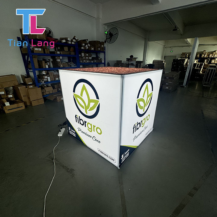กล่องไฟทรงลูกบาศก์5ด้านแบบพกพานำกลับมาใช้ใหม่ได้กรอบอลูมิเนียมพร้อมผ้าความตึงเครียดสำหรับงานแสดงสินค้าและนิทรรศการ