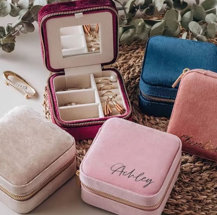 กล่องใส่เครื่องประดับกำมะหยี่แบบพกพา รูปทรงกลมและสี่เหลี่ยม พร้อมกระจก กล่องเก็บของขายส่งสำหรับสร้อยคอและแหวน