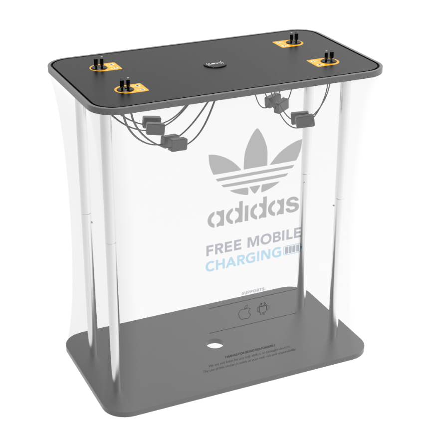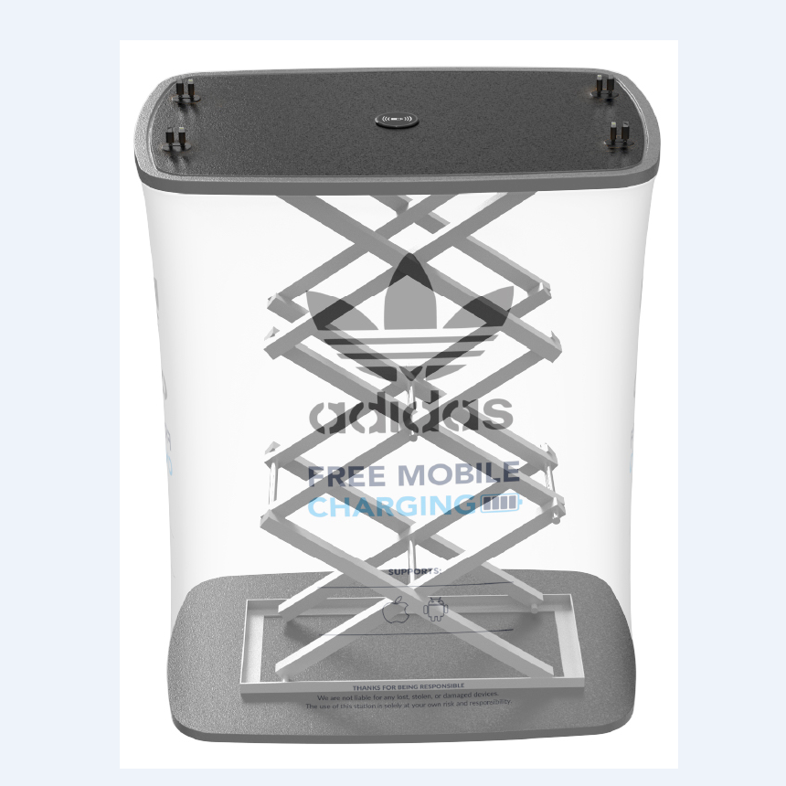 โต๊ะชาร์จแบบป๊อปอัพ SQUARE แบบพกพาสําหรับอุปกรณ์เคลื่อนที่ ศูนย์โฆษณาแบบพับได้ สะดวกและประหยัดพื้นที่