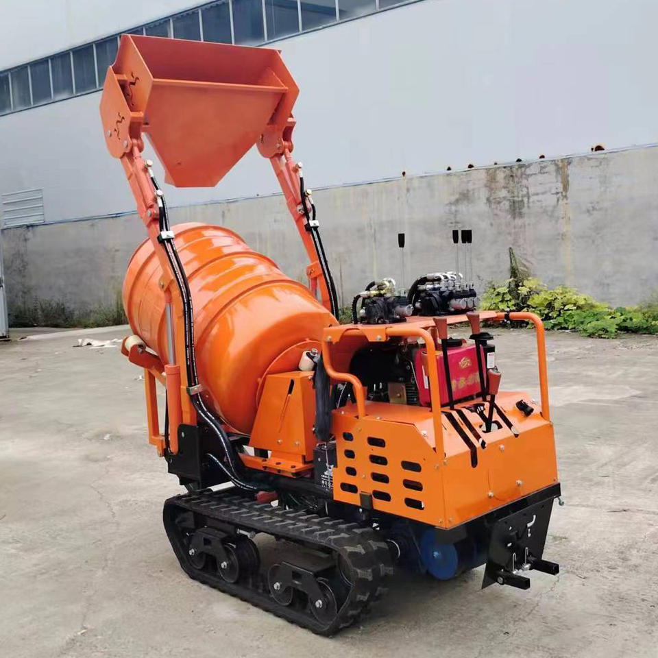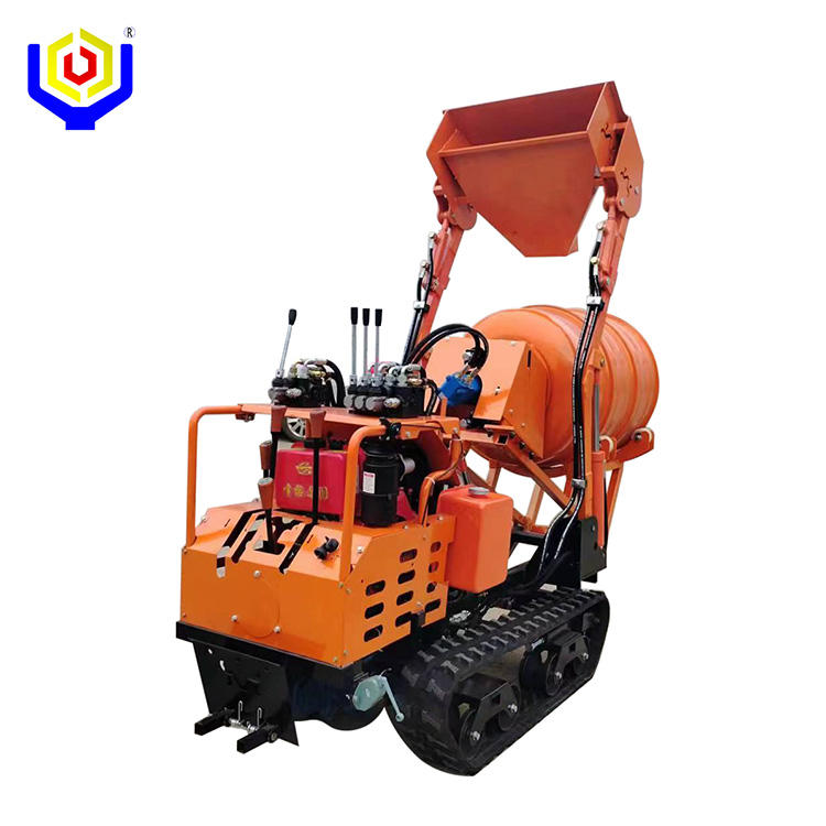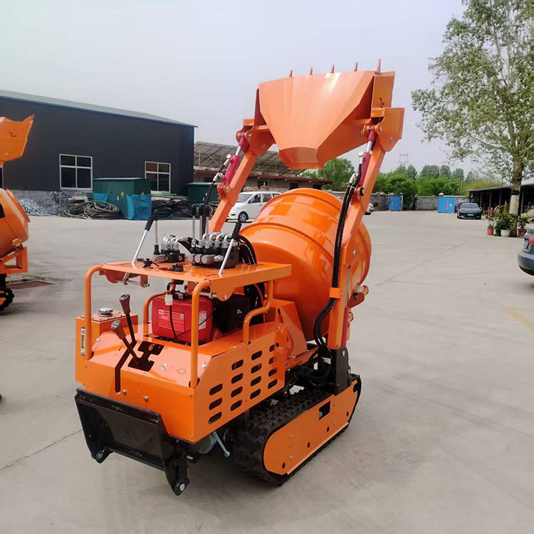 เครื่องผสมคอนกรีตแบบเคลื่อนที่ได้ บรรทุกเองได้ ใช้ในบ้าน ขนส่งและผสมได้หลากหลาย ใช้งานได้หลากหลาย รถตักคอนกรีตขนาดเล็กแบบตีนตะขาบ
