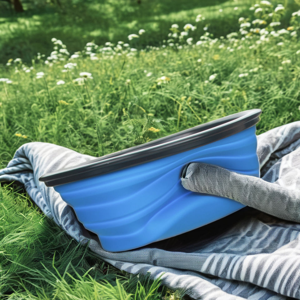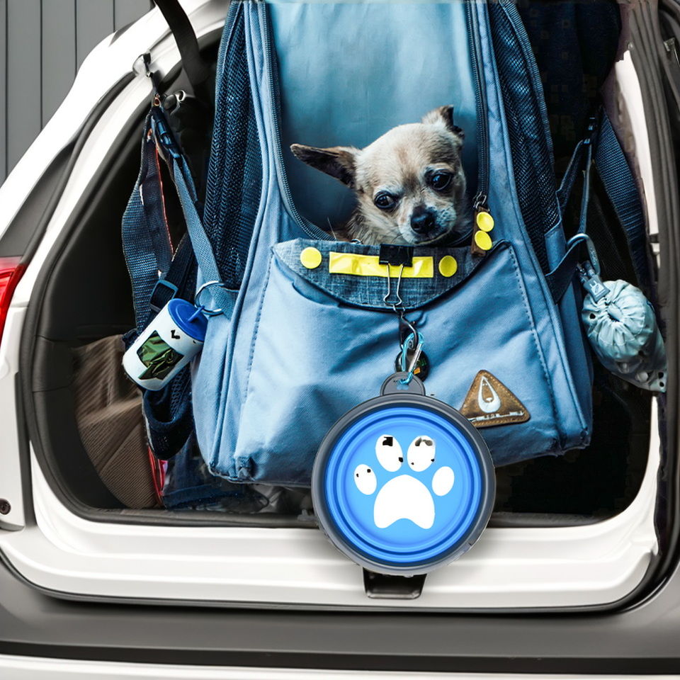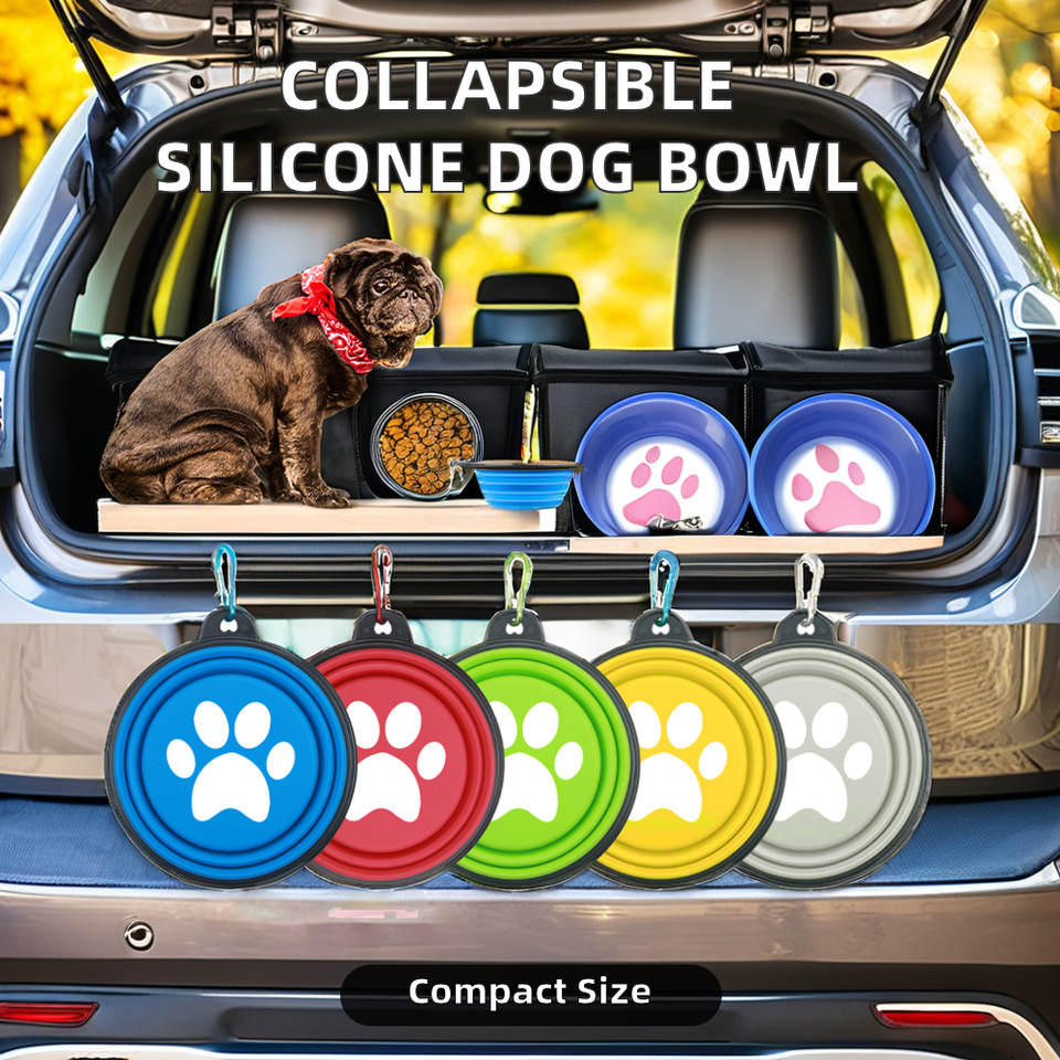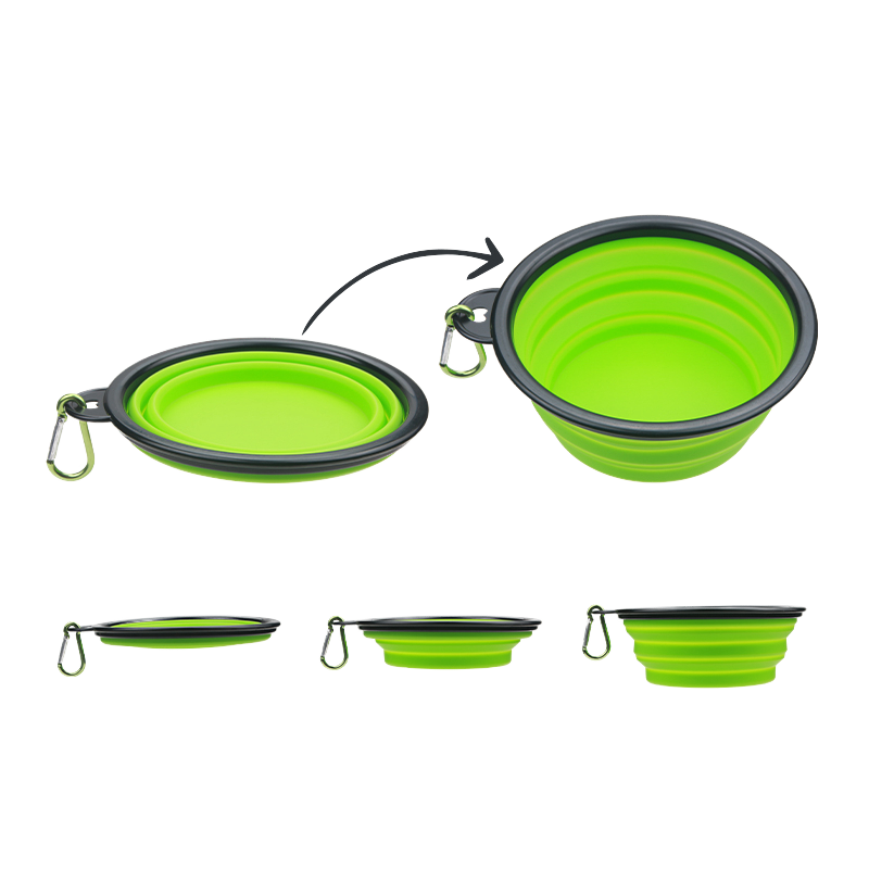 ชามอาหารสัตว์เลี้ยงทำจากซิลิโคนแบบพับได้ชามใส่ขวดอาหารทรงกลมแบบอัตโนมัติสำหรับการเดินทางกล่องใส่น้ำ