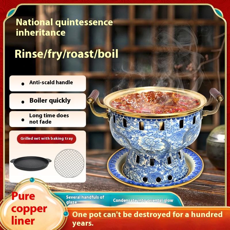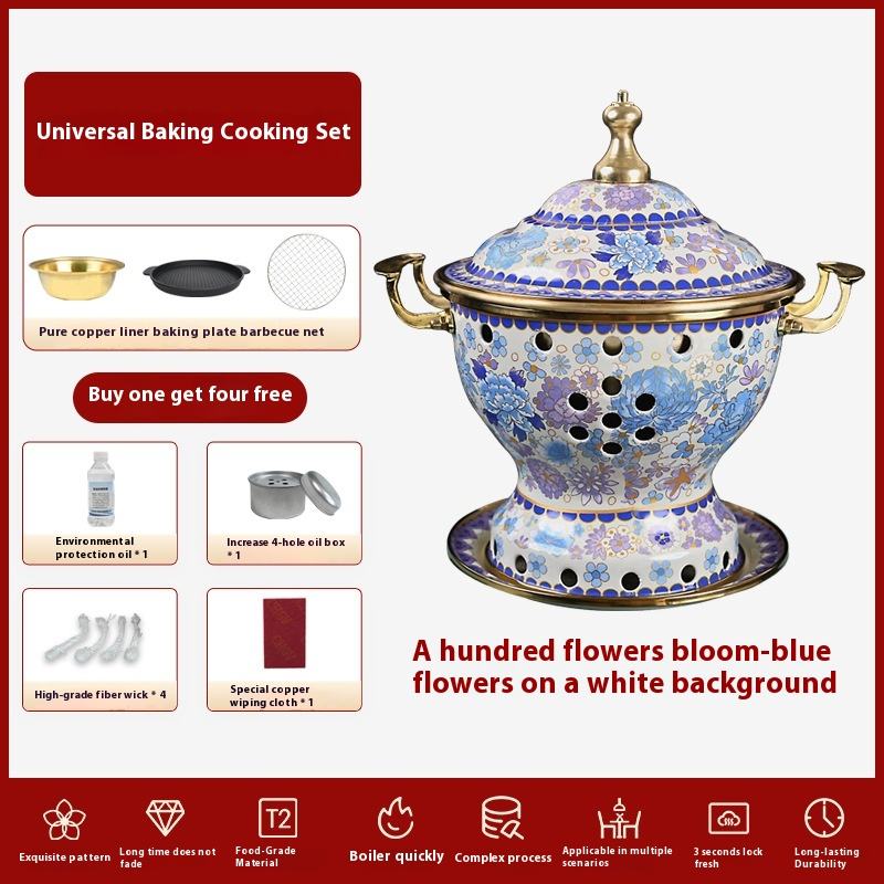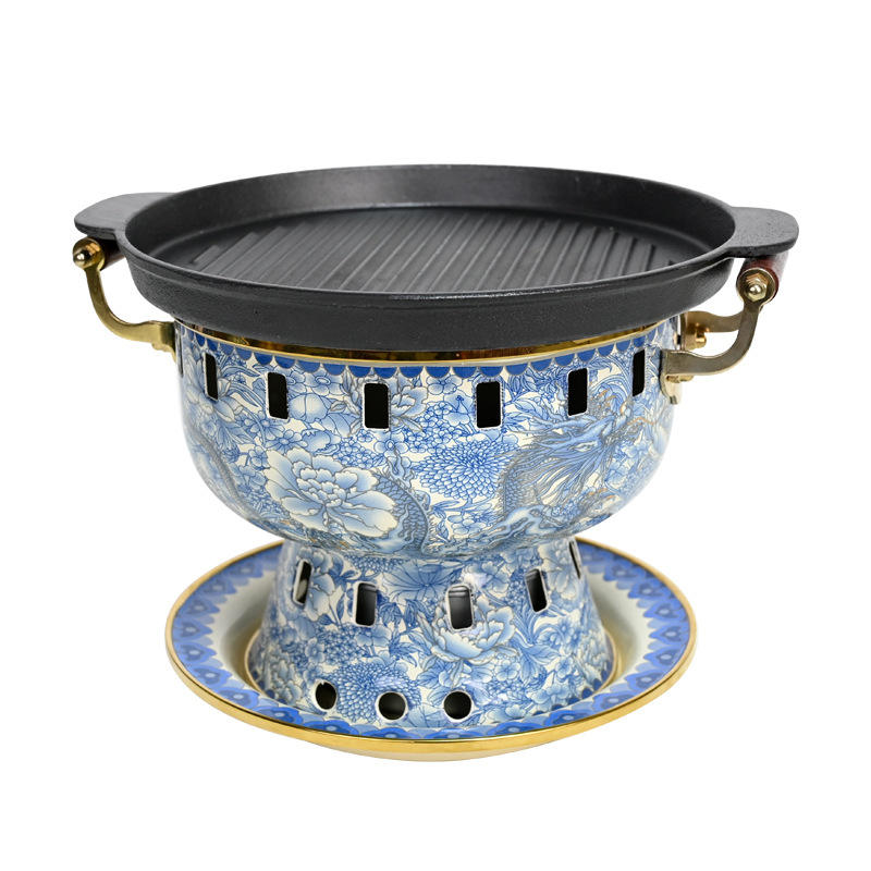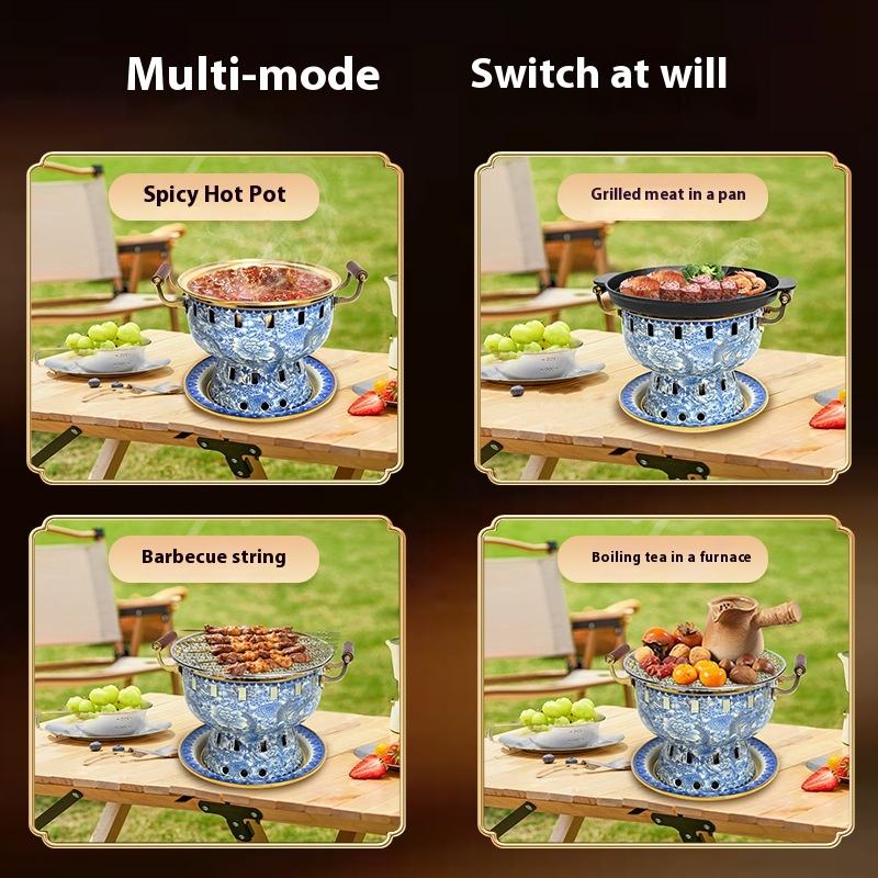 เตาย่างหม้อไฟเคลือบอีนาเมลแบบพกพาสำหรับใช้ในบ้านปิคนิคกลางแจ้งแคมป์ปิ้งบาร์บีคิวเตาชงชา