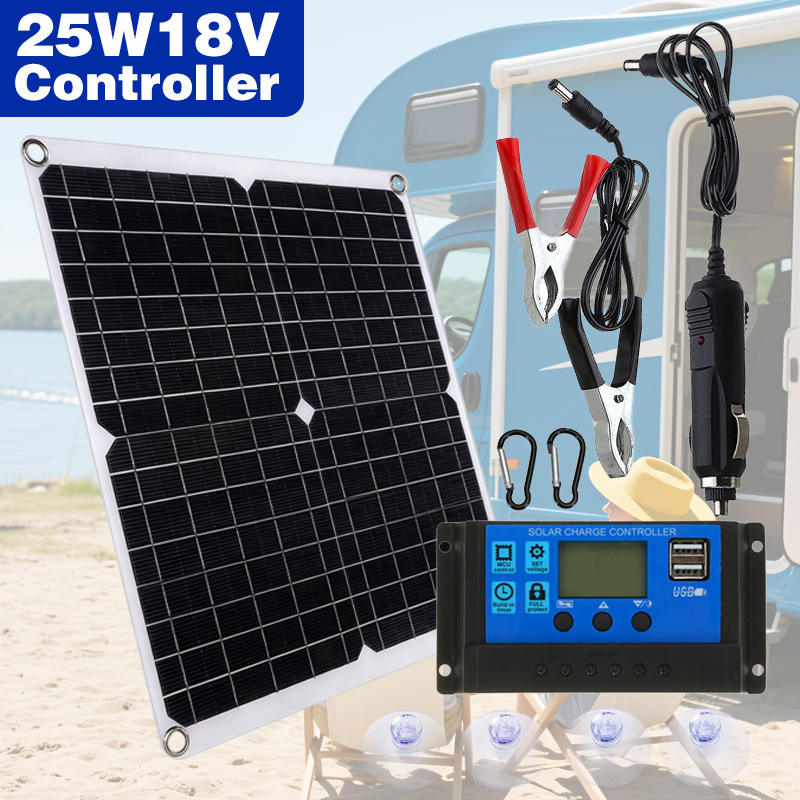 แผงโซลาร์เซลล์แบบพกพา 25W 18V พร้อมตัวควบคุมอินเทอร์เฟซ USB สำหรับการตั้งแคมป์กลางแจ้ง