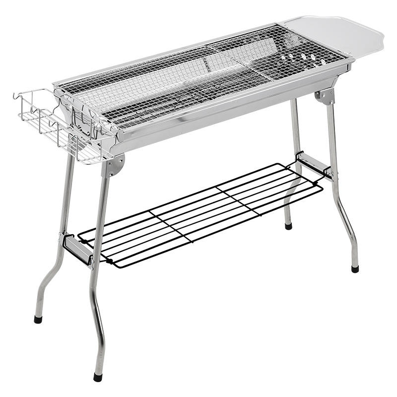 Portable Stainless Steel BBQ Grill 73x33.5x70cm Outdoor Charcoal Grill With Storage Rack For Home Use