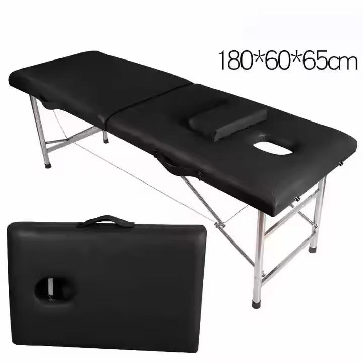 เตียงต่อขนตาแบบพกพา สแตนเลสสตีล สำหรับร้านเสริมสวย เตียงสปาพิเศษ หุ้มหนังสังเคราะห์ พับได้ โครงเหล็ก ใช้สำหรับนวดในโรงแรม